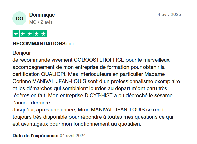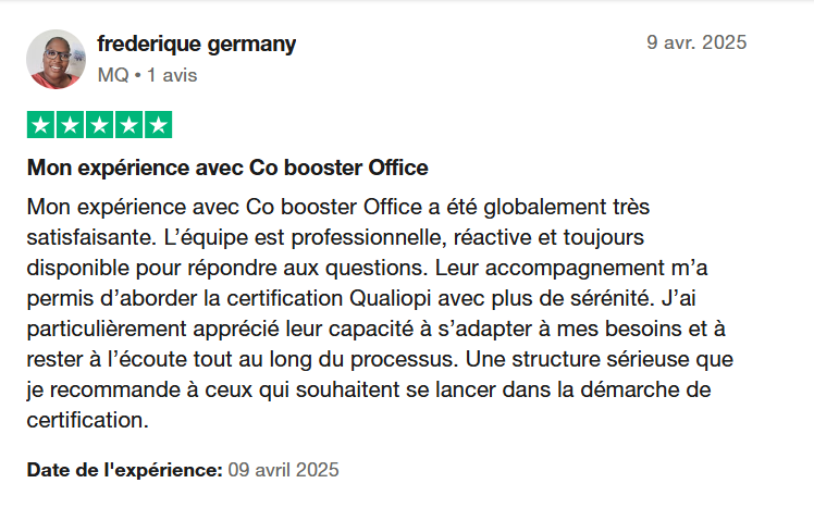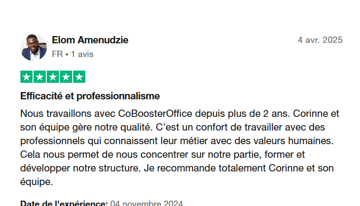 Vos retours nous aident à nous améliorer ! Partagez votre expérience avec Co'Booster Office en laissant un avis. Cliquez ci-dessous pour nous donner votre retour !